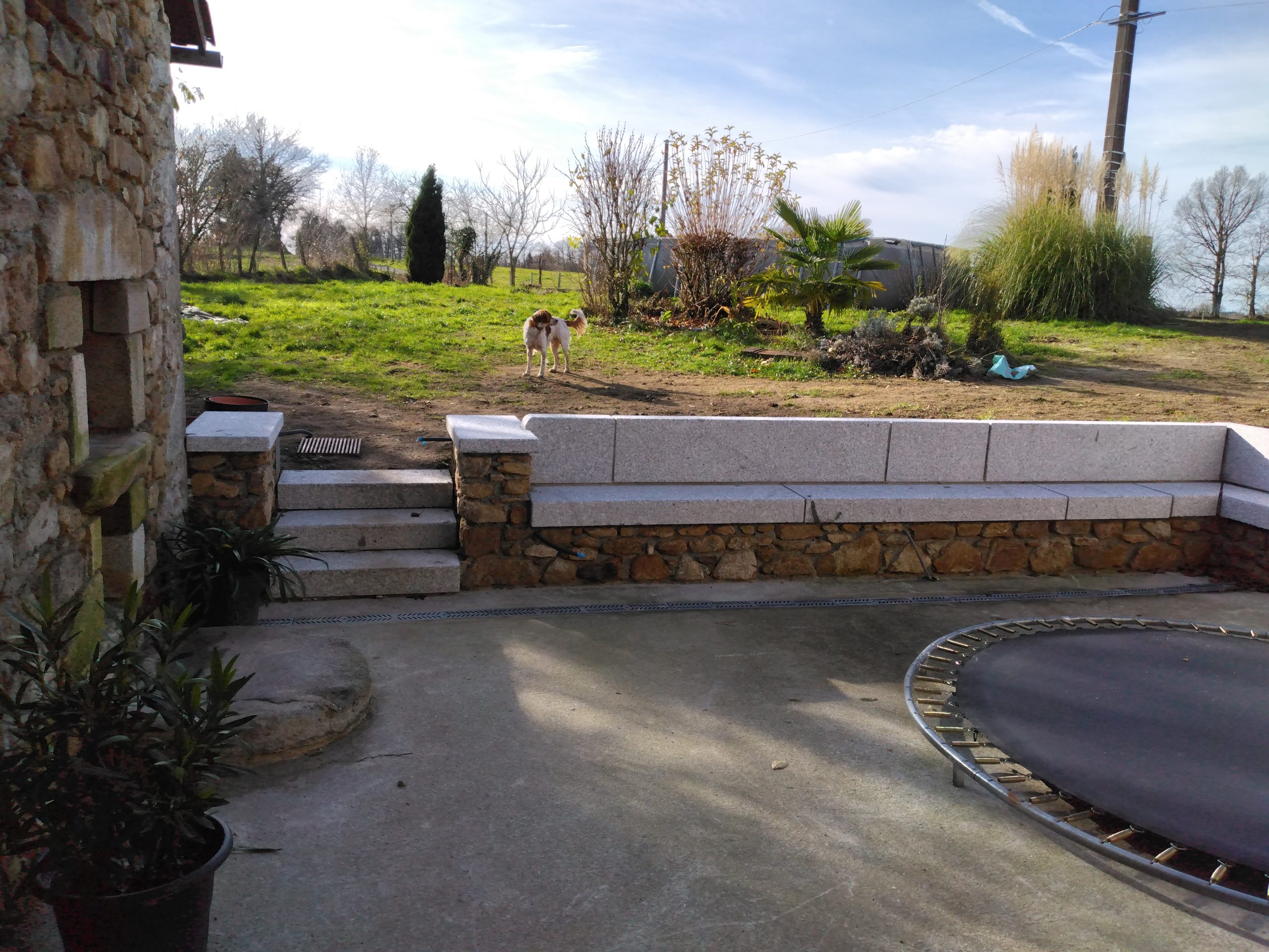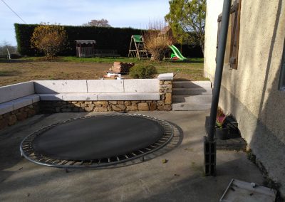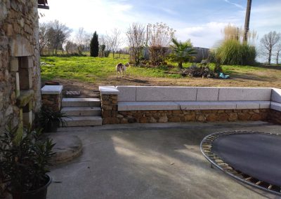 Aménagement de Terrasses extérieures et pose escaliers et bancs en pierre de taille