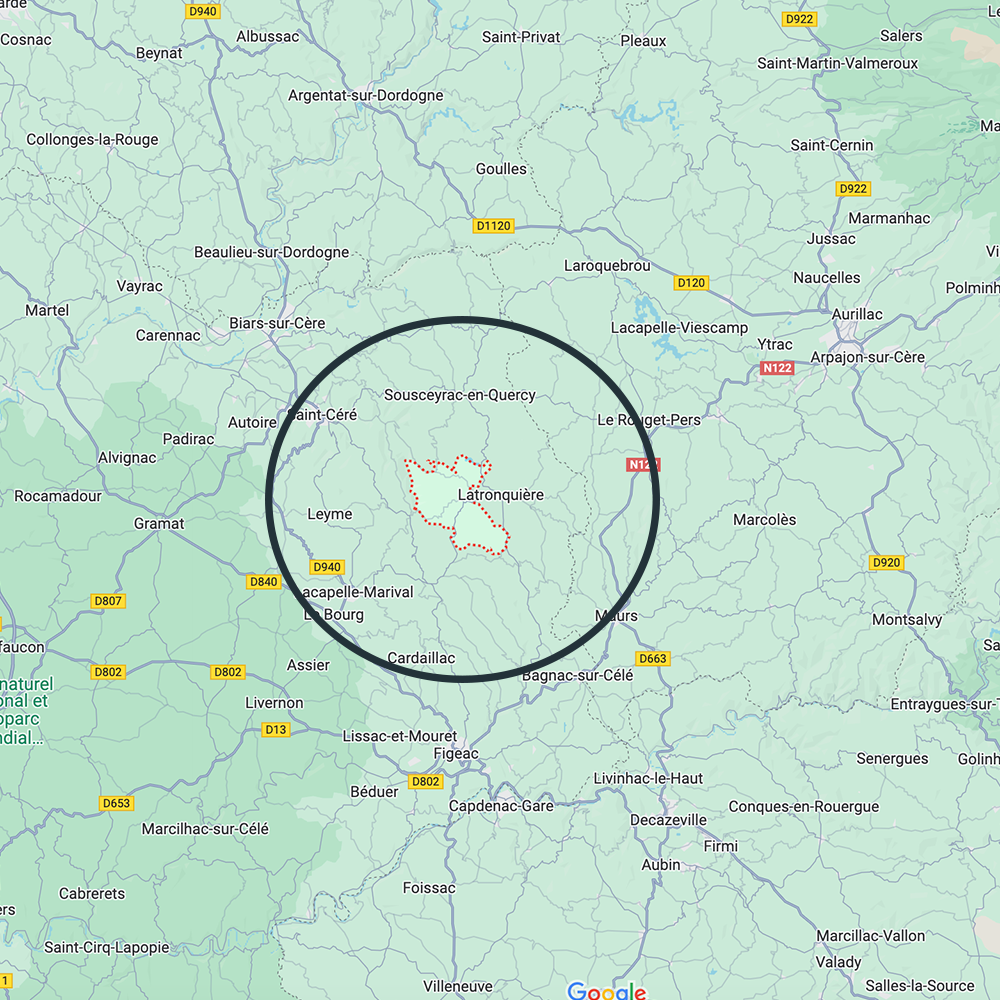 Basé à Gorses dans le Lot (46210), j’interviens dans un rayon de 20 km autour : Lacapelle-Marival, Labathude, Latronquière, Leyme, Montet-et-Bouxat, et les communes voisines.